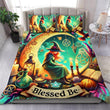 Witch Sitting on the Moon Pagan Bedding Set for Samhain, Mabon, Litha