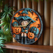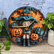 Wooden wall clock with a witch and pumpkin for Halloween decor - Witchy Wall Clock