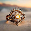 Yellow Crystal Triple Moon Wicca Ring Pagan Jewelry-MoonChildWorld