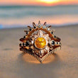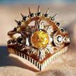 Yellow Crystal Triple Moon Wicca Ring Pagan Jewelry