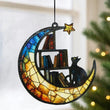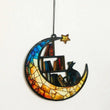 Acrylic Suncatcher Crescent Moon Black Cat Window Hanging Ornament for Christmas