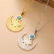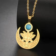 Blue Stone Lotus Moon Necklace Healing Yoga Jewelry