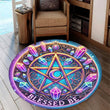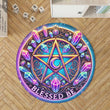 Crystal Pentacle Round Rug Blessed Be Wicca Carpet for Pagan Home Decor