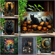 Halloween Wall Art Witchy Black Cat Metal Sign Spooky Home Decor