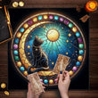Mystical Black Cat Moon Tarot Tablecloth Wicca Altar Cloth for Divination Pagan Decor