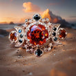 Red and Black Crystal Wicca Triple Moon Ring Pagan Jewelry