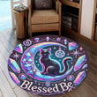Wicca Black Cat Round Rug Witchy Cat on the Moon Carpet Wiccan Home Decor