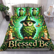 Witchy Green Owl Wiccan Bedding Set for St. Patrick's Day Decor