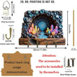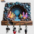2D Crystal Cave Witchy Wood Key Rack - Magic Key Holder 4 Metal Hooks for Wicca Wall Decor
