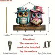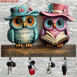 2D Cute Owl Wooden Multifunctional Key Holder with Four Metal Hooks