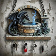 2D Fire Breathing Dragon Wooden Key Holder with Four Metal Hooks