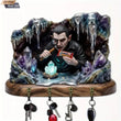 2D Gothic Vampire Dracula Key Holder 4 Metal Hooks - Halloween Wood Key Rack