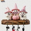 2D Halloween Ghost Pumpkin Wooden Key Holder with Four Hooks Witch Home Decoration