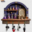 2D Magic Witchy Potion Wood Key Rack - Witchcraft Key Holder 4 Metal Hooks for Wicca Wall Decor