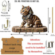 2D Pharaoh Cat Wood Key Rack - Egyptian Cat Key Holder 4 Metal Hooks