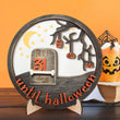 3D Halloween Wooden Countdown Ornament - Gothic Grave Design with Pumpkins and Moon