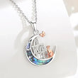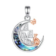 925 Silver Abalone Shell Moon Cat Bookshelf Necklace Witchy Jewelry
