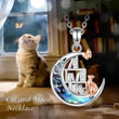 - Enchanting moon cat necklace with bookshelf symbolism