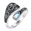 925 Sterling Silver Moonstone Gothic Snake Adjustable Ring Witch Jewelry