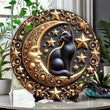 Black Cat and Moon Metal Tin Sign Witchy Cat Wall Art for Wiccan Christmas Decor