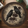 Black Raven and Full Moon Round Rug Gothic Witchy Crow Carpet