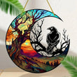 Black Raven Suncatcher Dark Crow Witchy Acrylic Round Sign Gothic Home Decor