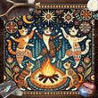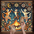 Bonfire Dancing Cat Sun Moon Tarot Tablecloth Witchy Altar Cloth Wicca Divination Cloth