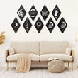 Illuminate your space with the mystique and harmony of the cosmos! Our Sun and Moon Phases Wall Art is the perfect blend of boho moon wall art and celestial wall art for your home. Designed for modern free spirits and lovers of witchy home decor, this moon wall hanging celebrates every phase of the moon alongside the radiant sun, offering a unique conversation piece for your wall.