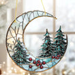 Christmas Acrylic Moon Ornament with Pine Trees - Christmas Tree Ornament