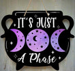 Gothic Witch Door Hanger - Purple Halloween Cauldron Moon Phases Wooden Sign Home Decor