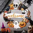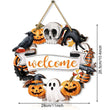 Halloween Welcome Wreath Decor with Cat Raven Skull Pumpkins Ghost - Witch Wooden Sign for Gothic Halloween Decor-MoonChildWorld