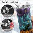 Jack-o-lantern Pumpkin Gothic Skinny Tumbler with Lid and Straw