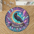 Moon Raven Round Rug Witchy Black Raven Carpet for Wicca Home Decor