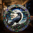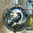 Moon Raven Suncatcher Witchy Crow Acrylic Round Sign Gothic Home Decor