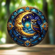 Owl Moon Suncatcher Celestial Acrylic Round Sign Aesthetic Home Decor