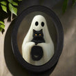 Retro Ghost and Black Cat Witchy Wooden Oval Frame - Gothic Oval Wall Art - Halloween Wall Decoration