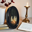 This Halloween rustic wall decor is perfect for any room in your home, whether it’s your living room, bedroom, study, or even as part of a gallery wall for seasonal decorations. Its small gothic oval frame makes it versatile enough to fit into small spaces while still making a bold statement.
