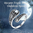 Silver Wicca Triple Moon Goddess Ring Moonstone Hecate Amulet Ring Pagan Jewelry-MoonChildWorld