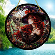 Skull Witch Suncatcher Gothic Acrylic Round Sign Halloween Home Decor