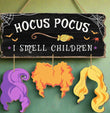 Spooky Hocus Pocus Witchy Wooden Sign - 'I Smell Children' Halloween Door Hanger with Witch Silhouette