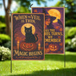 Witch Cat Halloween Garden Flag and House Flag for Pagan Samhain Home Decor