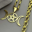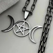 Harness the power of moon magic and sacred geometry with this Triple Moon Pentagram Necklace, a bold and protective piece of Wicca jewelry crafted from durable stainless steel. Combining the Triple Goddess moon phases with the ancient pentagram symbol, this necklace embodies protection, intuition, and spiritual balance – making it an ideal amulet for witches, pagans, and spiritual seekers.