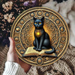 Witchy Black Cat on Book of Shadows Wicca Metal Sign